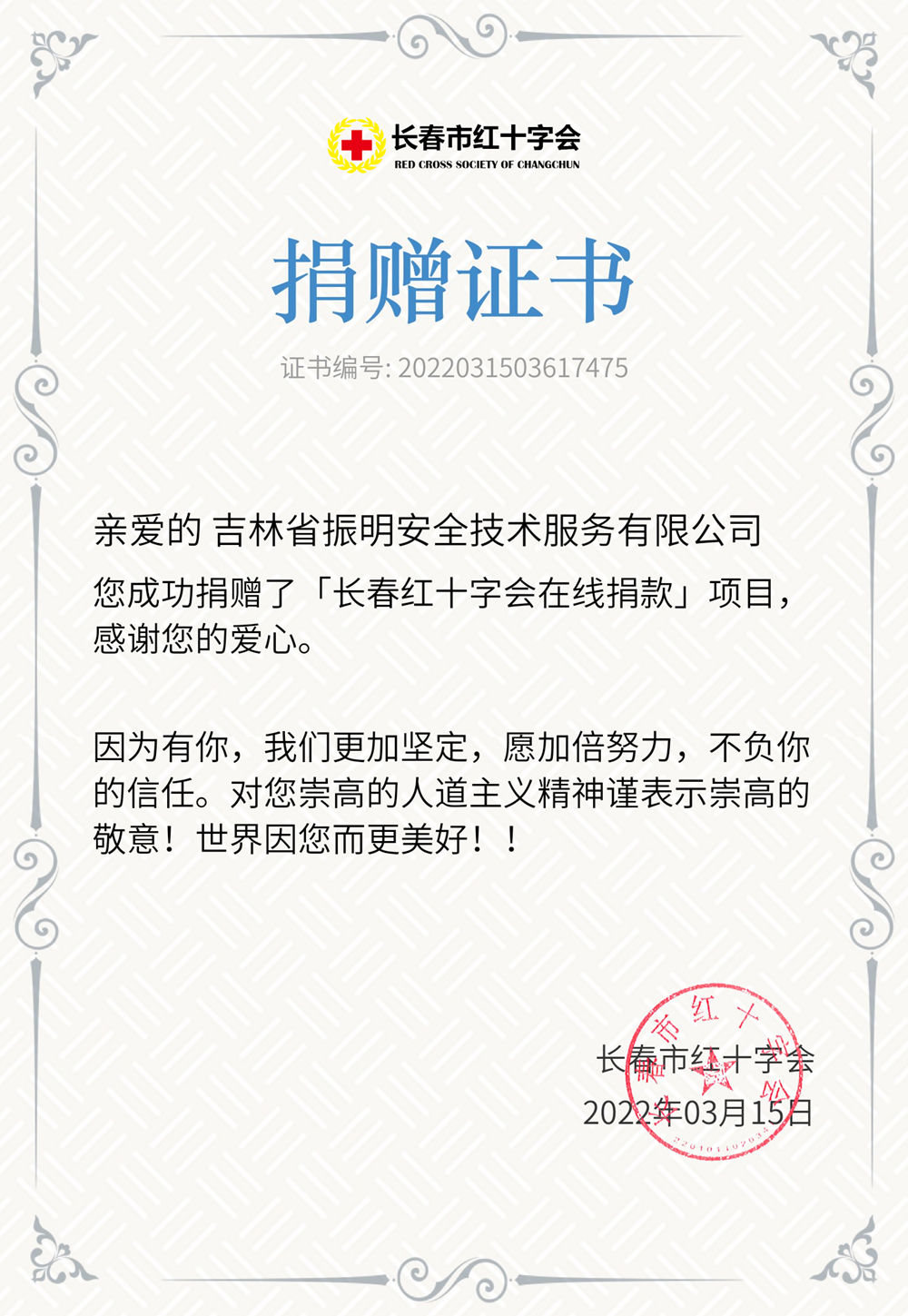 長春市榮盛社區捐贈